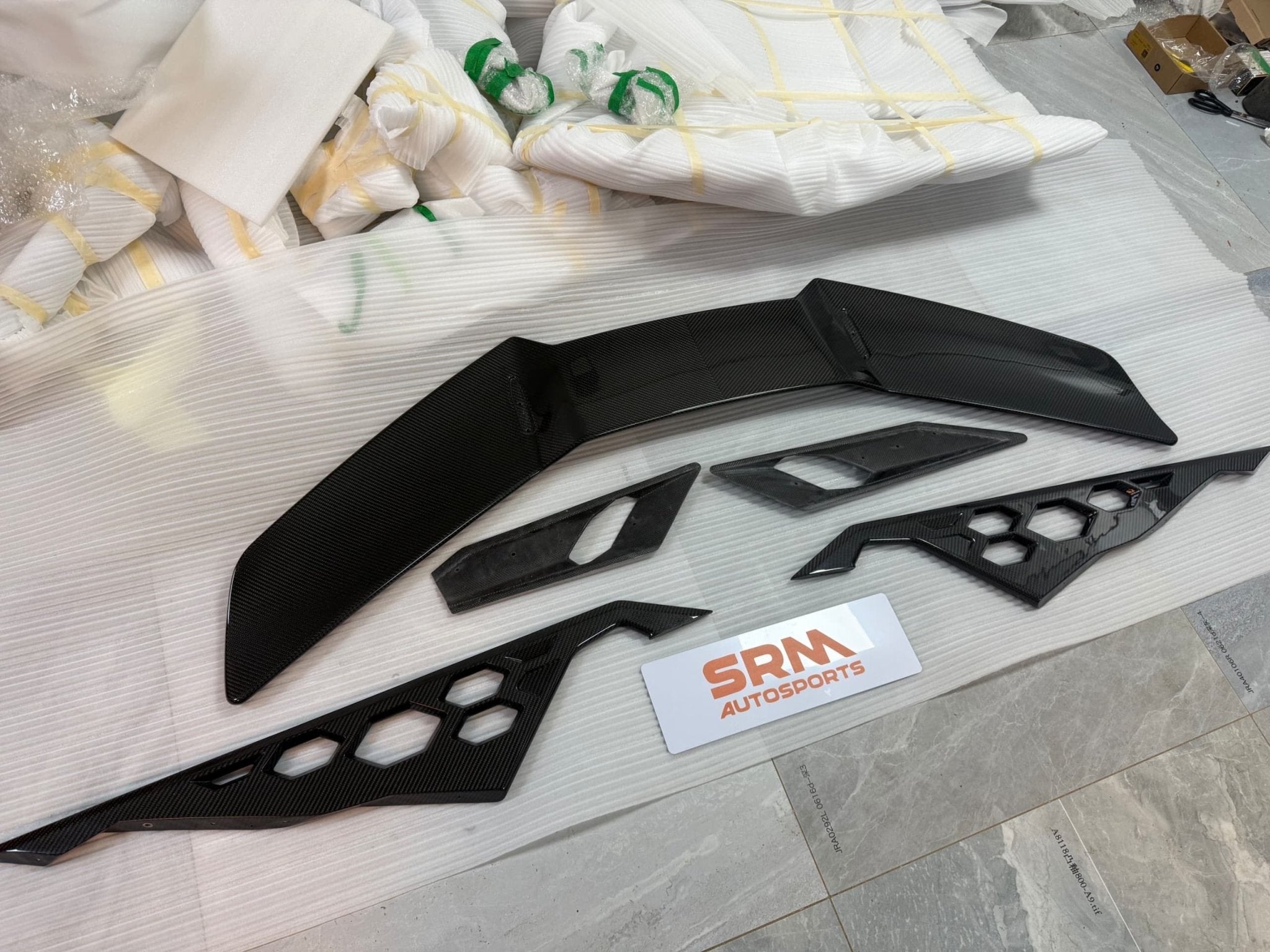 Each wing is made to order with a 3-week production time, guaranteeing meticulous attention to detail and quality craftsmanship. Designed for discerning owners who demand only the best in aftermarket performance upgrades, this carbon fiber rear wing combines luxury aesthetics, performance engineering, and OEM compatibility.